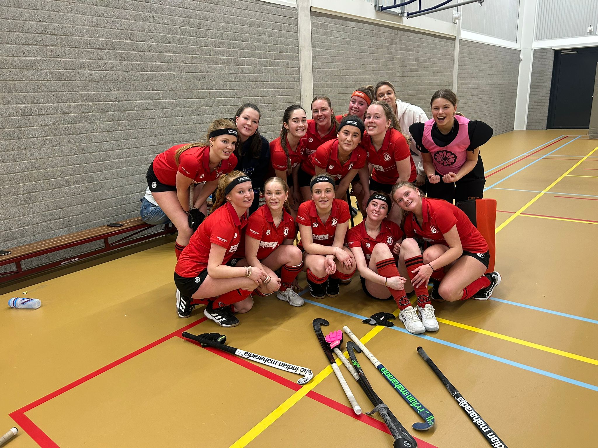 Ondanks alle uitdagingen staat MO18-1 overtuigend bovenaan. Zelfs met twee wedstrijden minder gespeeld dan de nummer twee. Extra knap is dat het team geen vaste keeper had. Dat werd geen probleem maar juist een kracht. Met slimme tactische keuzes, soms zelfs door de keeper eruit te halen en met zes verdspeelsters te spelen, wisten ze achterstanden om te buigen en wedstrijden naar zich toe te trekken.