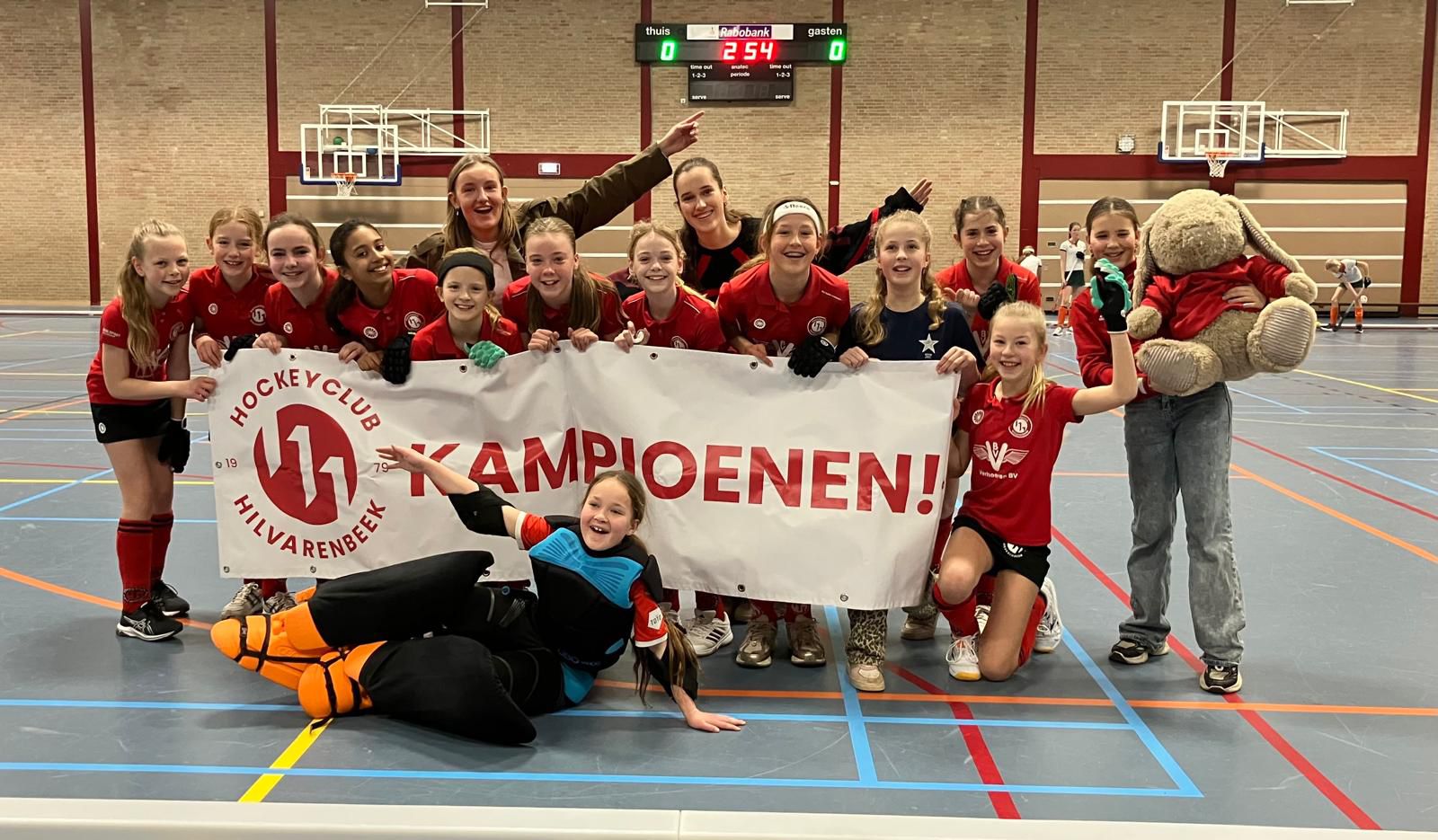 Door de sneeuw waren een aantal wedstrijden afgelast en twee daarvan hebben we vandaag ingehaald en met succes. We zijn zaalkampioen geworden!!! Het waren twee spannende wedstrijden tegen MOP en Dommel. De meiden hebben goede inzet getoond en dat resulteerde tot twee keer winst!! Wij zijn super trots en gaan nu knallen tijdens de buitencompetitie.